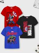 MARVEL BY MISS & CHIEF Boys Cartoon/Superhero Cotton Blend Regular T Shirt (Multicolor, Pack of 3)