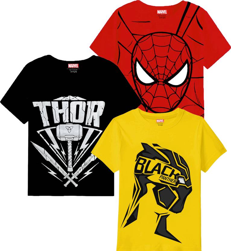 MARVEL BY MISS & CHIEF Boys Graphic Print Cotton Blend Regular T Shirt (Multicolor, Pack of 3)