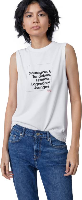 Get that fangirl heart rolling with excitement because your favourite Super Heroes are now available on a printed tank top. This message printed top is perfect to flaunt your style while keeping you comfortable and relaxed all day long.