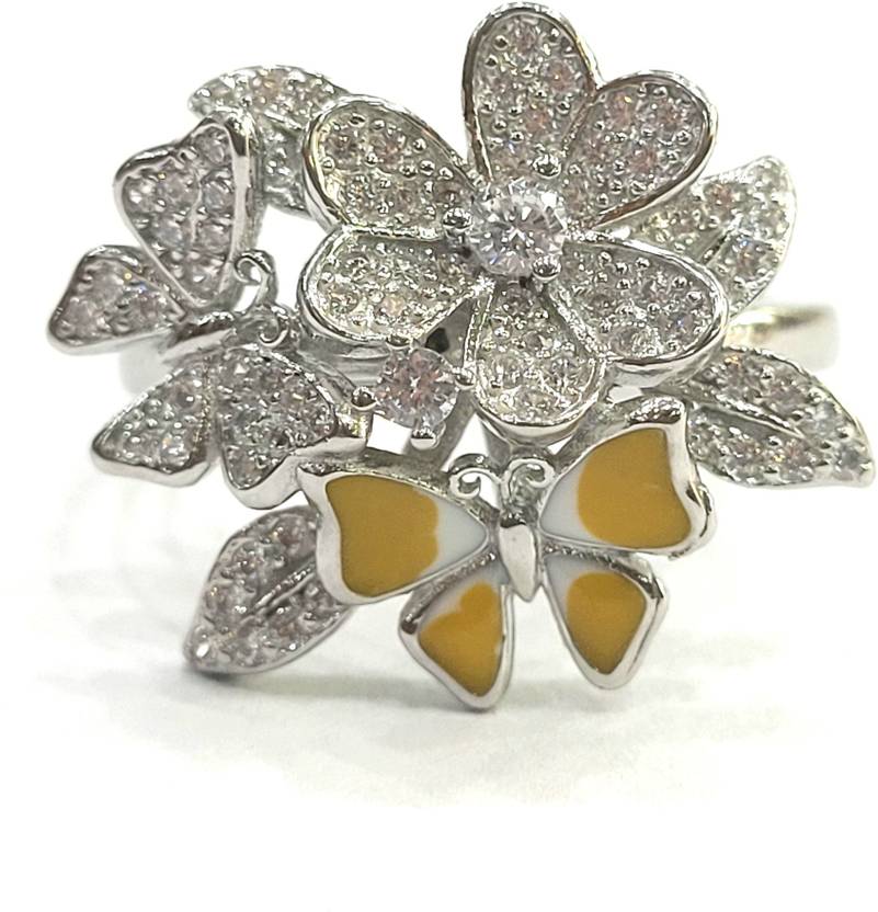 MJ/LR/02 Sterling Silver Swarovski Zirconia Rhodium Plated Ring