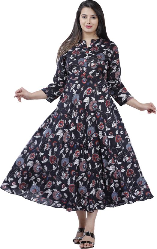 Women Printed Viscose Rayon A-line Kurta (Grey)