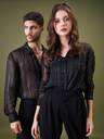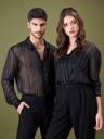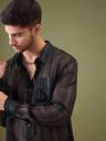 Unisex Black Lurex Relax Fit Shirt, in Georgette fabric, Unlined, Regular Length, Relax Fit, Button Closure, Straight Hemline and features Pocket At Front