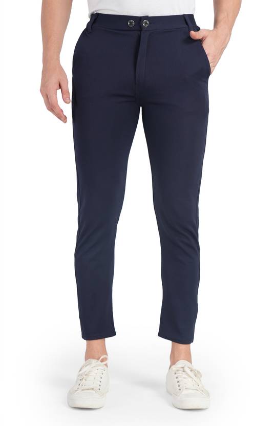 Men Regular Fit Dark Blue Lycra Blend Trousers