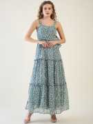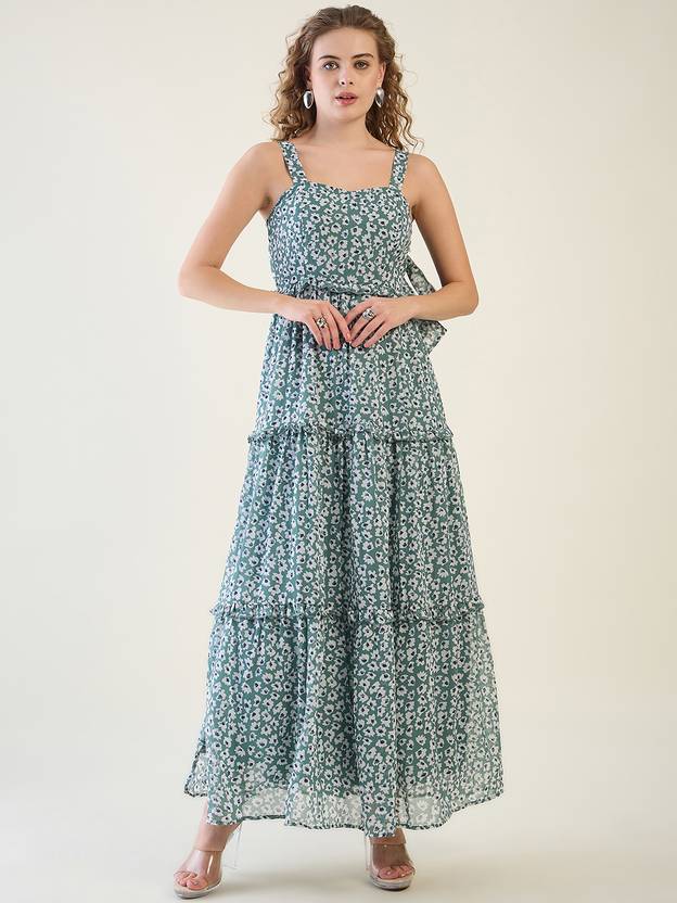 Aayu women squre neck printed maxi Dress, in georgette fabric, maxi length, sleeveless length & closer zip maxi printed dress....