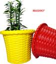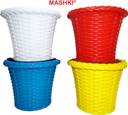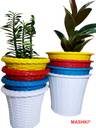 MASHKI 6 Inch Juhi Garden Pot, MAT Designed Multicolored, Plastic Pots (Pack of 4) Plant Container Set, Beautiful Round Gamla Pot for Home Gardening, Flower Pot for your Balcony Plant Container Set (Pack of 4, Plastic)