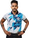 Men Printed Polo Neck Polyester White, Blue T-Shirt