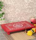Maskey Red Painted Multi Use Shubh Laabh Hand Crafted ( 12" x 15" ) Premium Quality Wooden Pooja Patla / Path / Wooden All Purpose Chowki (Red, Pack of 1)