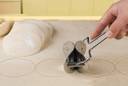 The dough press set is made of high-quality stainless steel and sturdy enough for a long time lasting. Small size, comfort handle, easy to store by just hanging it on your kitchen's wall. Those kitchen gadgets are perfect for dumplings, pie, ravioli, pot sticker,pastries, bread, cookies, biscuits, tarts, mini pizzas, etc. Dumpling wrapper will help you make the dough in the perfect size and round shape, which will bring you more convenience. It can section quickly and evenly, saving time and effort, it is recommended dough roll a little too thin and then cut. Stainless steel rolling pastry dough cutter saves time when cutting 3.54 x 2.75-inch continuous sheet circles of dough or pasta, stainless steel blades that cut perfect circles from dough in one easy motion. Even if you are a beginner, it will allow you to make beautiful wavy-shaped dumplings in a short period so that you won't be in a hurry. You can also use it to make Empanada, Ravioli, Won-tons, Pot stickers, Paste Lillo, fried pie, and some small desserts pastries. The bottom is an "Arc design" that will not even hurt your hand while cutting the dough evenly. It is very convenient, and the children will like it too.