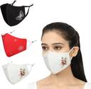 MASQ Anti-Pollution, Anti-Bacterial (BFE>99%) 4 Layer Embroidered, Designer, Fashionable & Protective Nylon Cloth Face Mask Combo for Women, Girls with Detachable Chain, Size Adjustable Ear Loops & Lanyard Snowflake_Combo_Large_03 Reusable, Washable Cloth Mask (Black, Red, White, L, Pack of 3, 4 Ply)