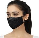 MASQ Anti-Pollution, Anti-Bacterial (BFE>99%) 4 Layer Embroidered, Designer, Fashionable & Protective Satin Cloth Face Mask Combo for Women, Girls with Detachable Chain, Size Adjustable Ear Loops & Mask Bag Crystal_Black_Large_01 Reusable, Washable Cloth Mask (Black, L, Pack of 1, 4 Ply)