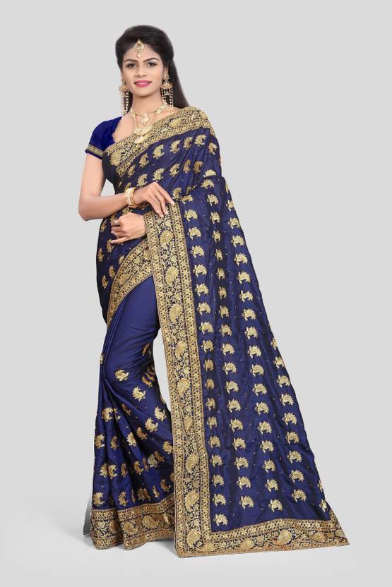 Women beauty is magnified tenfold in this engrossing navy blue colored party & festive wear saree. This saree featuring a beautiful heavy embroidery with stone work which makes this saree perfect for any occasion. This art silk saree comes along with art silk blouse piece which can be stitched as per your style & requirement. Style it with right accessories for that complete ethnic look. Perfect choice for every women.This saree would surely attract you showers of compliments when you wear it for parties, functions or occasions.