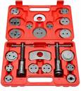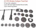 Product description Introductions: This tool kit allows you to rewind the pistons in brake calipers by hand without damaging the gaskets in the pistons. It does this by allowing the rotation of the piston at the same time as pushing the piston back into the caliper. Features: 1. This set includes both right and left hand threaded rewind tools 2. 2 pin fixed drives 3. 17 adaptors which fit a variety of modern cars 4. Come with sturdy blow molded red case Specifications: 1. Color: Gray 2. Dimensions: (13.18 x 2.75 x 9.25)" / (33.5 x 7 x 23.5)cm (L x W x H) 3. Weight: 88.89oz / 2.52kg 4. Quantity: 21 Pcs 5. Adaptable Car: Universal 6. Material: 45 # Steel Package Includes: 1 x 21pcs Disc Brake Caliper Wind Back Tool Kit
