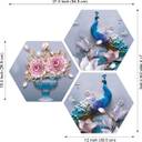 • Peacock with Pink Flower Modern Art 3 Piece Hexagon MDF Painting