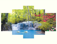 Masstone Vastu Natural Waterfall 5 Panel MDF Painting Digital Reprint 17 inch x 30 inch Painting (With Frame, Pack of 5)
