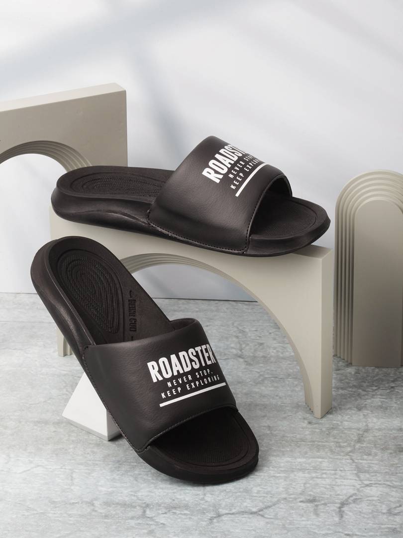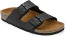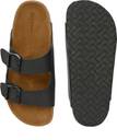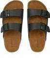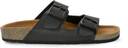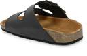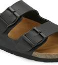 A pair of Cork Finish Slip on Arch Support Black Sandal for men, Upper: PU, Sole: PU, soft footbed with buckle detail. A pair of Cork Finish Slip on Arch Support Black Sandal for men, Upper: PU, Sole: PU, soft footbed with buckle detail.