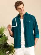 Mast & Harbour Men Solid Casual Blue Shirt