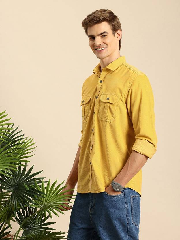Mast & Harbour Men Solid Casual Yellow Shirt
