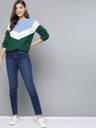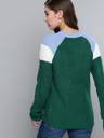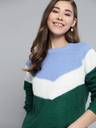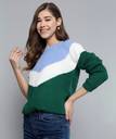Green, blue and white colourblocked pullover , has a round neck, long sleeves, and ribbed hem. Elevate your personal style with this snug and fashion-forward Mast amp; Harbour . When youre going to lunch with your family, style this green piece with slick black jeans and patent pumps.