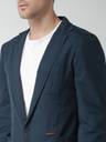 Navy blue single-breasted blazer, has a notched lapel, a button closure, long sleeves, three pockets, double-vented at the back