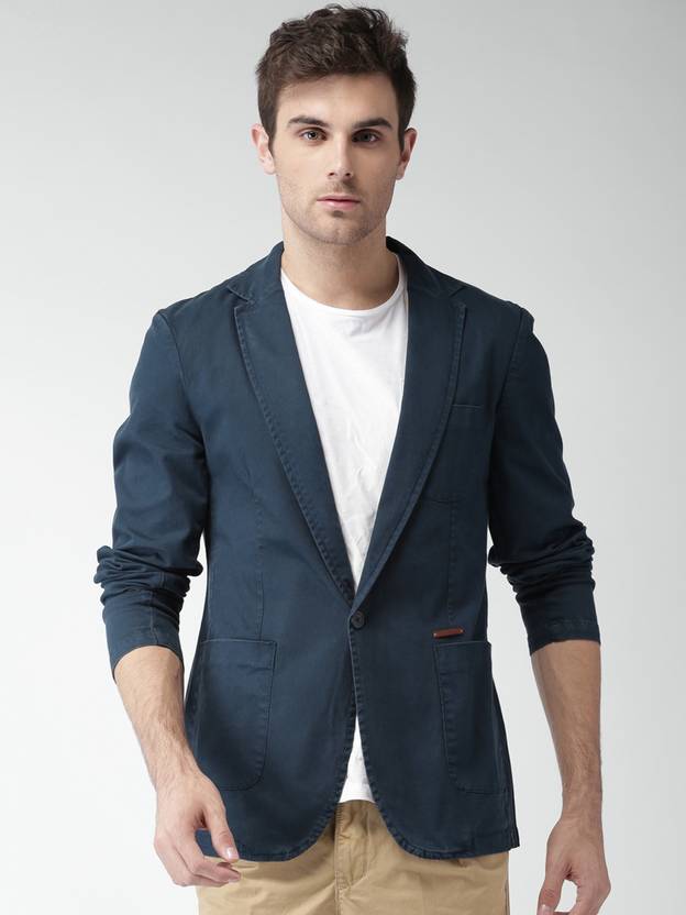 Mast & Harbour Men Solid Single Breasted Casual Blazer (Dark Blue)