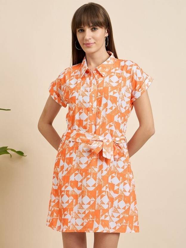 Women A-line Orange Above Knee/Mid Thigh Length Dress