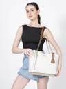 M&H Off white/Tan Structured Tote Bag has 3 main Compartments has Zip Closure 4 Inner Pockets 1 External Pocket and has a tassel , Cruelty Free Warranty 3 months Warranty provided by brand owner/manufacturer