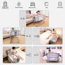 Flexible 3-in-1 Design – Serves as a bassinet, cradle, and bedside sleeper that can adjust according to your baby's requirements for a peaceful nap, Height Adjustability – Seamlessly adjust the height to be level with your bed, and late-night feeding and visits will be a breeze., Multiple Swing Modes – Calms your baby soothingly with changeable swing velocities, ensuring peace and comfort., Protective Mosquito Net – Made to protect your baby from insects while allowing proper airflow and ventilation., Washable & Breathable Mattress – Soft, snuggly, and easily washable to provide a clean and hygienic sleeping area for your baby., Swing Lock Feature – Lock the cradle securely when desired to stop unwanted movement and ensure safety.