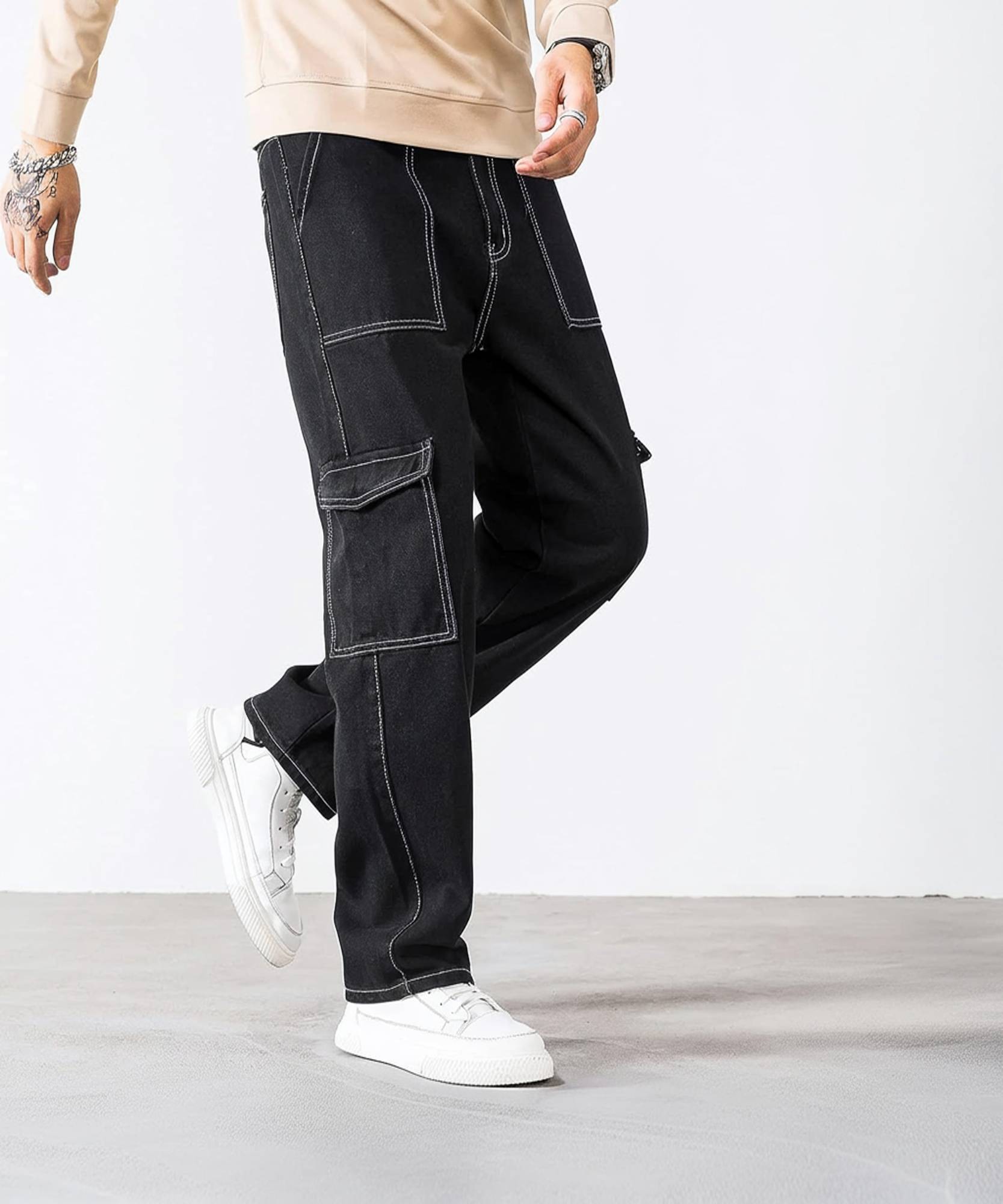 Masterly Weft Denim Jeans For Men 7 pockets Mid rise Stretch Fit jeans, lightly washed, has a zip fly with button closure, 2 scoop pockets with rivets on the front, waistband with belt loops, 2 patch pockets at the back with a brand patch on the back waistband This pair of jeans with relaxed comfort fit feel from our brand Masterly Weft is 'a must have' in your casual & Fromal closet.