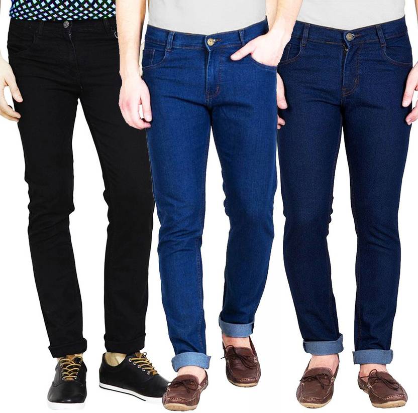 Men Slim Mid Rise Multicolor Jeans (Pack of 3)