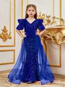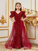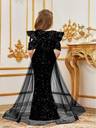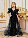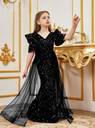 Make your little one the center of attention with this elegant black sequin gown, designed for girls who love to shine. Featuring dazzling sequins throughout, this stunning dress is enhanced with stylish puffy sleeves and a flowy sheer overlay that adds a touch of drama and grace. The flattering V-neckline and fitted silhouette make it perfect for parties, evening events, birthdays, or special occasions. Crafted with comfort and style in mind, this gown offers a beautiful balance of sparkle and sophistication—ideal for young fashionistas who want to stand out.