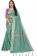Self Design Assam Silk Silk Blend, Cotton Silk Saree (Light Green)
