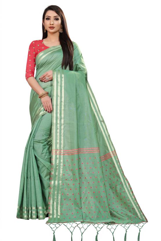 Matangi Exporter Self Design Assam Silk Silk Blend, Cotton Silk Saree (Light Green)