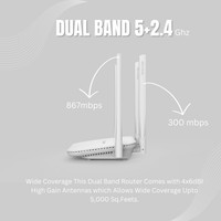 This Match LB-Link Archer gigabit router offers 5G and 2.4G. While the 5GHz band offers speeds up to 867Mbps, the 2.4G Hz band offers rates up to 300 Mbps, suitable for routine tasks like emailing and surfing the internet.