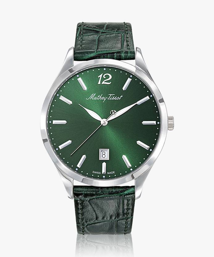 Amaze everyone around you by wearing this men's analog watch from MATHEY TISSOT. The green round dial is protected by a sapphire glass. The stainless steel strap comes in a green hue that further elevates the look of the timekeeper. Besides, it is completed with a buckle clasp to ensure a secure fit on the wrist.