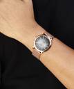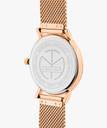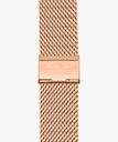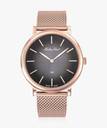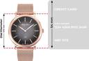 Rose gold-tone stainless steel case and bracelet. Fixed rose gold-tone bezel. Black dial with rose gold-tone hands and index hour markers. Minute markers around the outer rim. Dial Type: Analog. Scratch resistant sapphire crystal. Round case shape. Case size: 40 mm. Case thickness: 5.5 mm. Band width: 20 mm. Deployment clasp with a push button release. Water resistant at 50 meters.