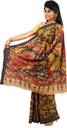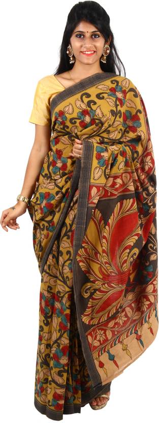 Floral Print, Solid/Plain Mangalagiri Handloom Cotton Blend Saree (Black, Yellow)