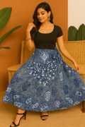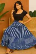 This classy Rajasthani cotton long wraparound skirt is designed to represent Rajasthani culture. It has a belt for convenient fitting on the waist. This stylish and traditional skirt looks great when paired with your favorite Tops, Shirts, Kurtis and T-Shirts. It is easy to carry on and comfortable for any season. It's length is 38 inches and width straight is 155 inches in lower side and 45 inch in upper side. This is wrap around skirt , it's wrapped around the waist like a towel. It has an adjustable belt which you can tie accordingly