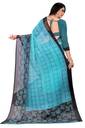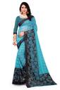 This Sari is by MATRUSHI CREATION . It is made of Georgette Material and Finished in Light Blue Colored . The Sari Length is 5.5 Meter and 0.8 meter Blouse piece . The Blouse Piece type isUnstitched .