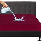 Mattress Protector Fitted Double Size Waterproof, Stretchable, Breathable Mattress Cover (Red)