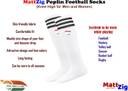 MattZig Indian Classic Club Football Kit Contains One pair of knee length Poplin football socks + One pair of shin guard + One pair of Indian Cotton Arm Sleeves. MattZig Football Socks are superior quality knee high football socks made from high quality Poplin cotton, which wicks away moisture to help keep feet dry and cool. A Great companion during football play and practice. MattZig shin guards are made from high quality material to ensure best fit and top class protection allowing you to play your game with ease. They protect the most susceptible part of your leg from uncontrolled kicks by opponents. The guard is of large size and has a plastic shell that ensures that all kinds of impact and shock are absorbed. Back of guard has soft foam making the guard feel very soft and comfortable on leg. It is slip in type shin guard which slips smoothly inside football socks over shin and keep shin guard at right place when you are playing. MattZig UV Protection arm sleeves are an innovative new way to keep your arms safe from the harmful UV rays of the sun. In addition to the excellent sun UV rays' protection factor, these Sun Protective Sleeves help keep your arms cool and refreshed, whether you wear them for sport like Golf, football, cricket, hockey, diving, swimming, field games, volleyball, basketball or for outdoor activities like picnic, enjoying at sea beach, driving or even at work place. These sleeves are NOT AN IMPORTED CHEAP PRODUCT, they are SPECIALLY DEVELOPED IN HOUSE FOR INDIAN CONDITIONS, it is a MADE IN INDIA Product. These arm sleeves are made of high quality cotton fabric.