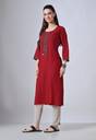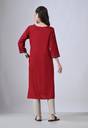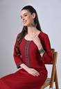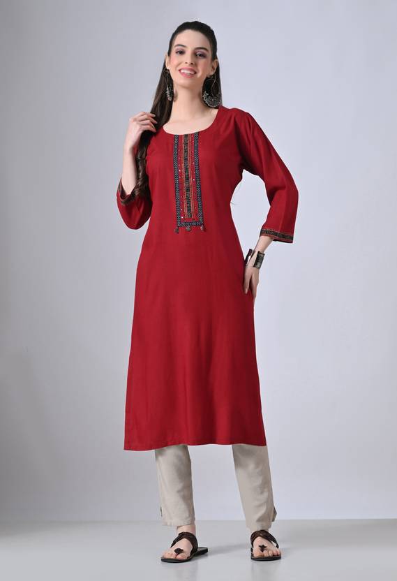 Upgrade your ethnic wardrobe with this beautifully designed MAURYA Women’s Straight Fit Silk Kurti, crafted to offer the perfect balance of elegance, comfort, and everyday sophistication. Made from premium-quality silk fabric, this kurti features a smooth texture with a graceful fall that enhances your silhouette while ensuring all-day comfort. The kurti showcases a stylish straight-cut design that flatters all body types, making it a versatile choice for women of all ages. The highlight of this kurta is its ornate yoke work embellished with delicate mirror detailing, adding a subtle festive charm without being overpowering. The elegant yoke design draws attention to the neckline, giving the kurti a refined and classy appeal. Designed with a round neck and three-quarter sleeves, this straight kurti offers a perfect blend of traditional aesthetics and modern styling. The calf-length silhouette makes it ideal to pair with leggings, palazzos, straight pants, or trousers for a complete ethnic or fusion look. Whether styled minimally for office wear or accessorized for festive occasions, this kurti adapts effortlessly to your needs. The silk fabric kurti for women is lightweight, breathable, and comfortable for long hours, making it suitable for daily wear, office wear, casual outings, family gatherings, festive occasions, parties, and gifting purposes. The rich solid color combined with detailed yoke mirror work makes it a timeless wardrobe essential.
