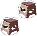 • 12 Inches Super Strong Folding Stool for Adults and Kids, Kitchen Stepping Stools | Kitchen Stool (Brown & Ivory) 2 Pcs | COMBO PACK