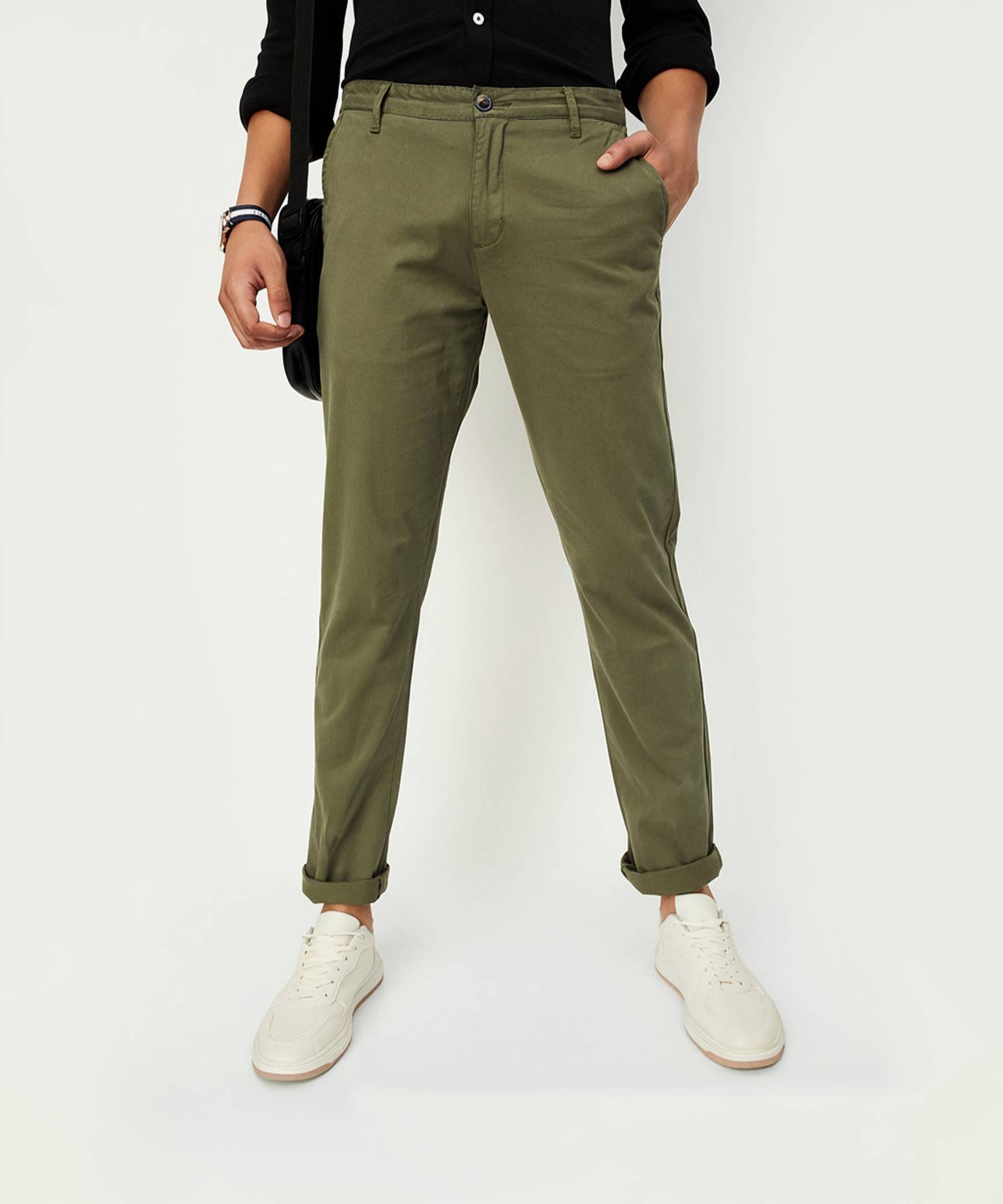 MAX Solid Men Green Track Pants