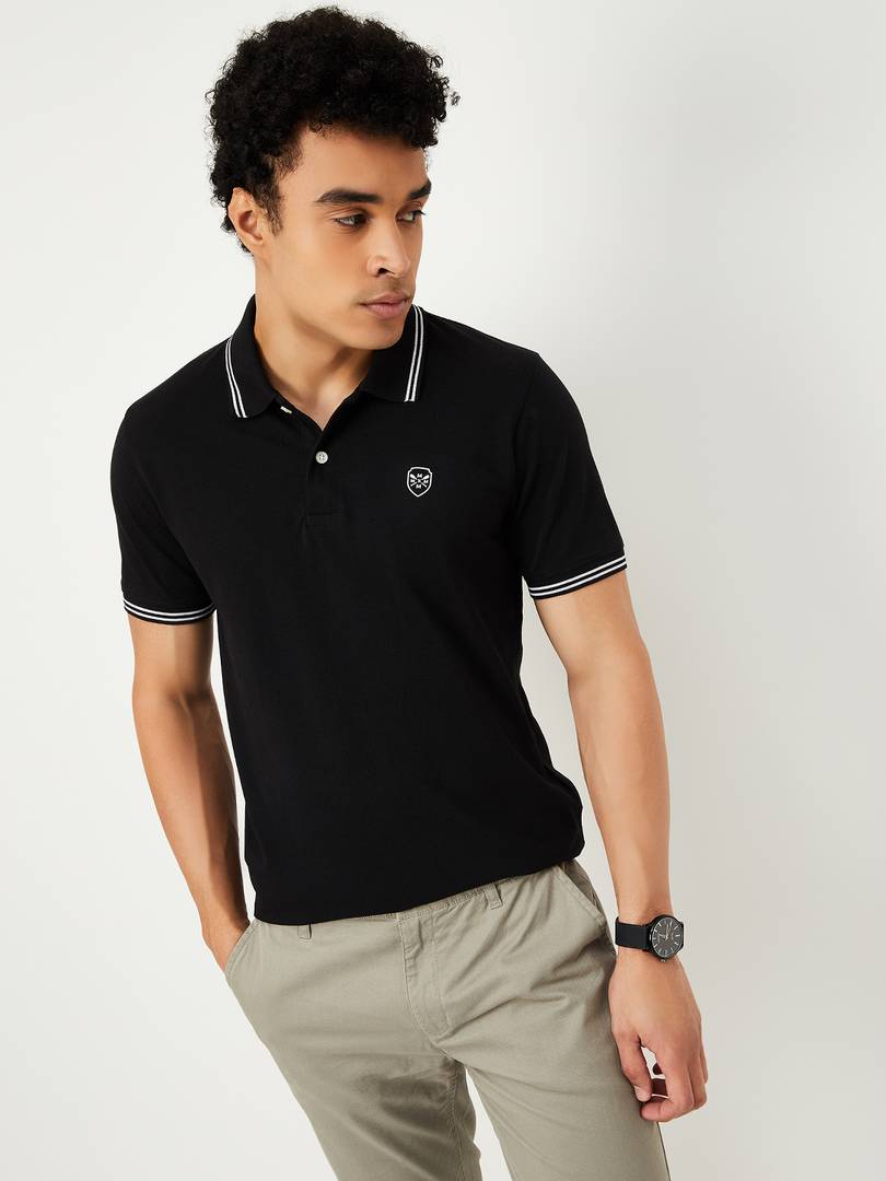 MAX Solid Men Polo Neck Black T-Shirt