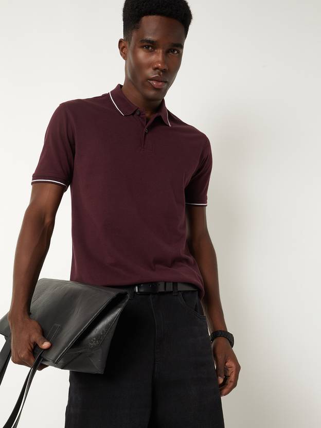 Men Solid Polo Neck Polyester Purple T-Shirt