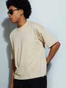 MAX Solid Men Round Neck Beige T-Shirt