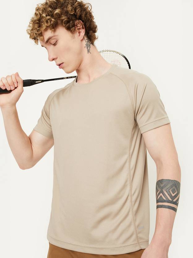 MAX Solid Men Round Neck Beige T-Shirt