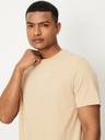 MAX Solid Men Round Neck Beige T-Shirt