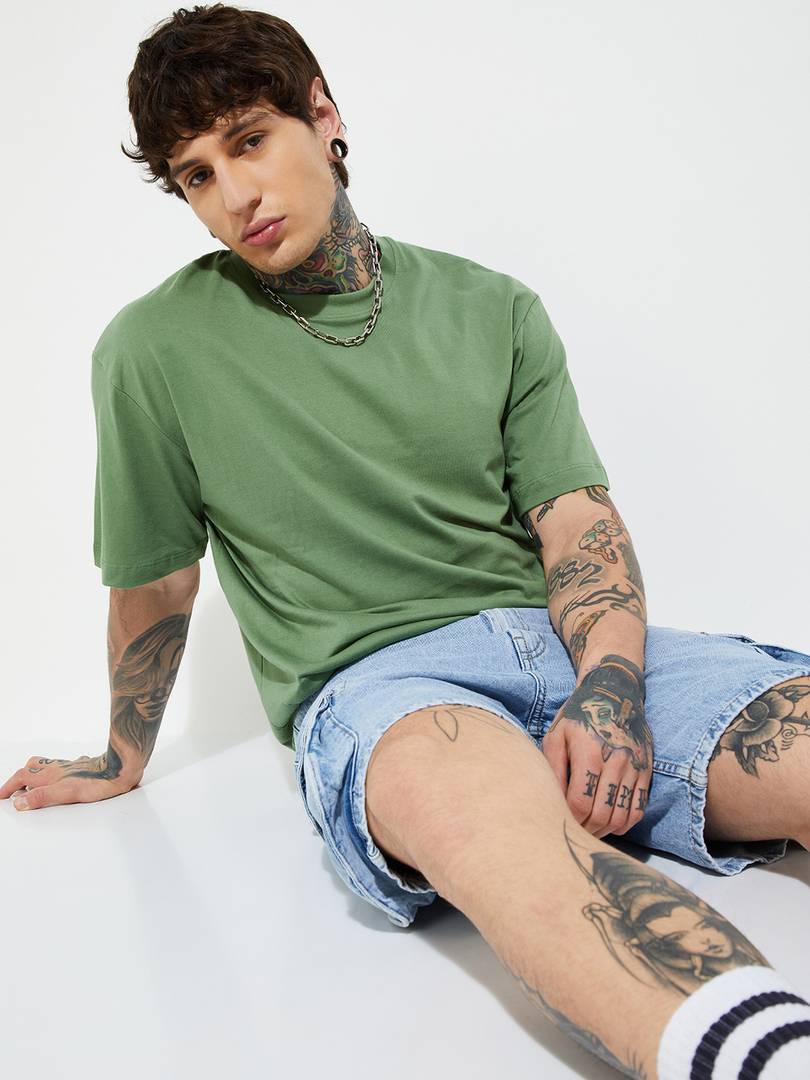 MAX Solid Men Round Neck Green T-Shirt