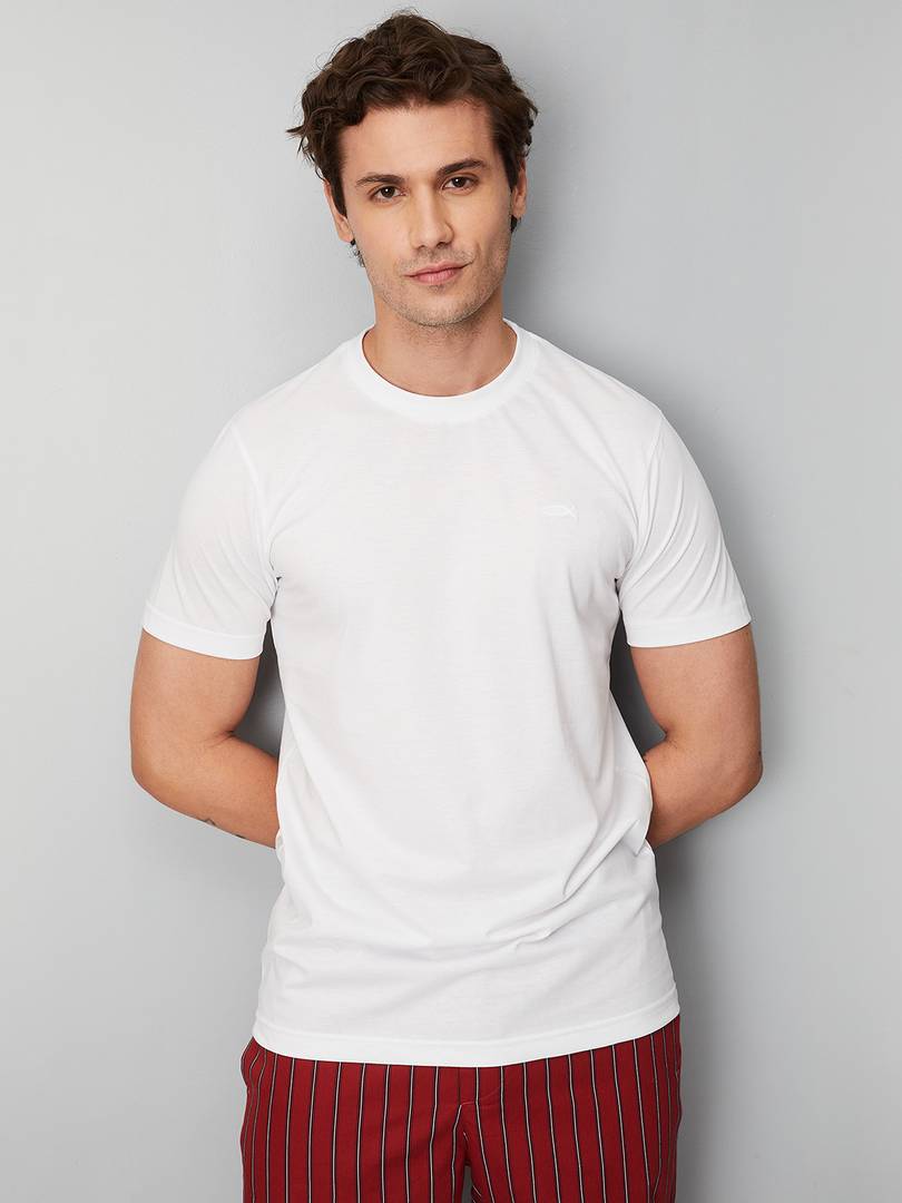 MAX Solid Men Round Neck White T-Shirt